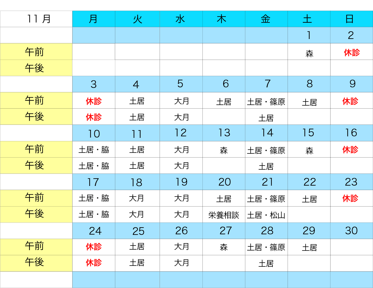 (但し、第1、3木曜日は土居先生)